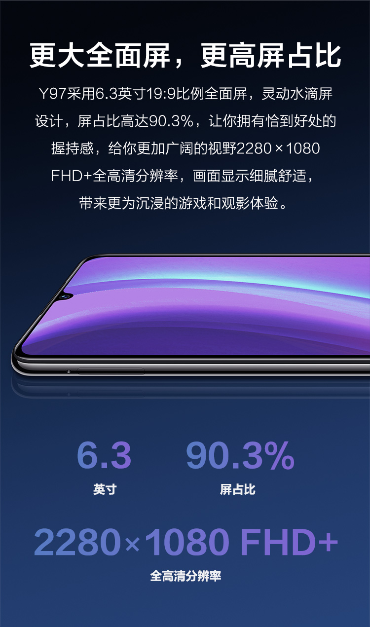 vivoY97 4+128GB 全网通4G 双卡水滴屏全面屏手机 AI智慧双摄